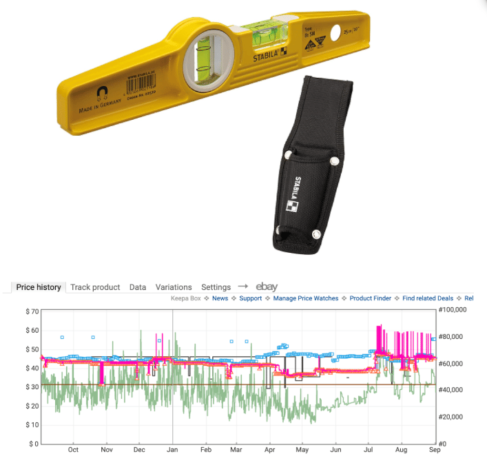 Why We Love This Lead: Pretty steady price over the past year. Had a slight price drop for 2 months then rebounded in July. Works really well at $42.50, $10.68 profit / 50.25% ROI. 295 sales/month in Tools & Home Improvement category.