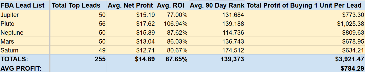 💸 Total Profit (all lists, buying 1 unit per lead): $3,921.47