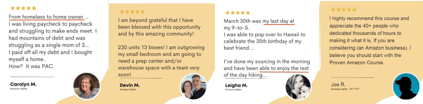 Proven Track Record – Students have turned starting-from-scratch situations into six-figure Amazon businesses. One student started with essentially nothing and built their way to financial freedom. PAC is designed for success, from day one to scale.